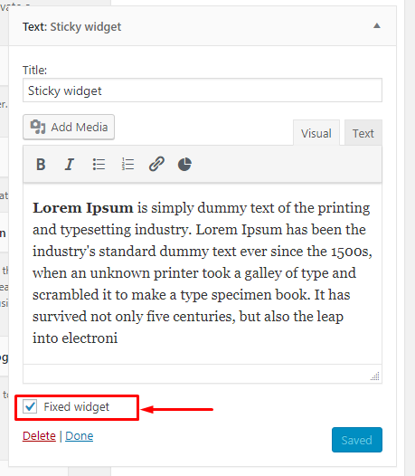 Q2w3 प्लगइन आपके सभी विजेट में एक Fixed Widget Option विकल्प जोड़ता है। जिसको टिक करना होगा अगर आप उसको फिक्स्ड विजेट बनाना चाहते है