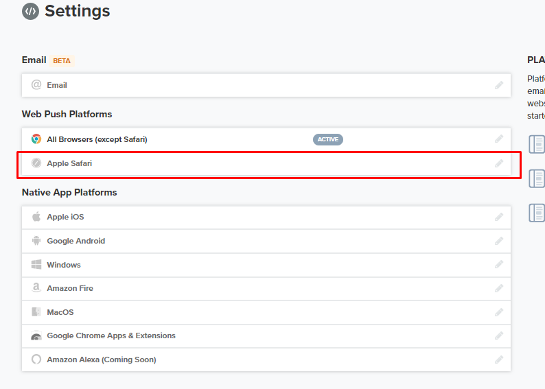 - अब आपको फिर से onesignal के account के अंदर अपने App की setting में जाना है और वहां Apple safari browser की सेटिंग को edit करना हैं।