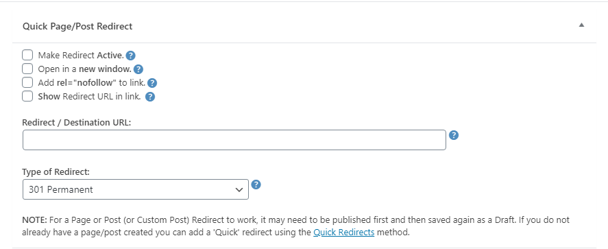 दोस्तों आप Quick PagePost Redirect Plugin की मदद से आसानी से 301 रेडिरेक्शन अपनी वेबसाइट पर कॉन्फ़िगर कर सके है |