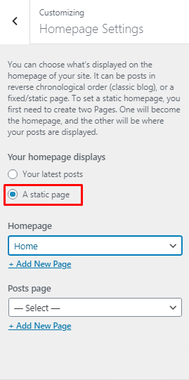 जब भी आप पहली बार कोई थीम इनस्टॉल करते है तो Default रूप से wordpress blog के homepage पर आपके recent blog posts दिखाई देते हैं इससे आपके visiotor को आपके homepage पर latest posts पढ़ने को मिल जाते है ।