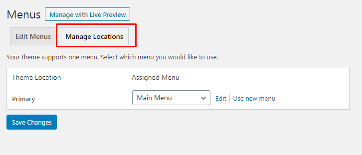 हालंकि Navigation menus की location अर्थात आपका मेनू कहा शो होगा जैसे हैडर, फुटर, साइडबार, टॉप बार इत्यादि आपके वर्डप्रेस थीम में डिफाइन होता है। ये लोकेशन अलग अलग थीम में अलग अलग दी जाती है । अधिकांश वर्डप्रेस थीम में एक primary menu होता है हैडर में लोगो के साइड में या लोगो के नीचे दिया जाता है । कुछ थीम Secondary menu आप्शन के साथ भी आती है जो Footer में दिखाई देती है। और कुछ थीम में टॉप मेनू बार भी होते है जिसमे सोशल मीडिया आइकॉन भी शो किये जाते है ।