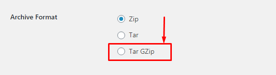 इसके बाद आपको, Archive Formate चुननी होगी। डिफ़ॉल्ट आप्शन Zip है, लेकिन यदि आप चाहें, तो इसे change कर सकते है । आपको Tar Gzip सेलेक्ट करना चाहिए इससे बैकअप कंप्रेस फॉर्म में बनेगा और कम साइज होगा