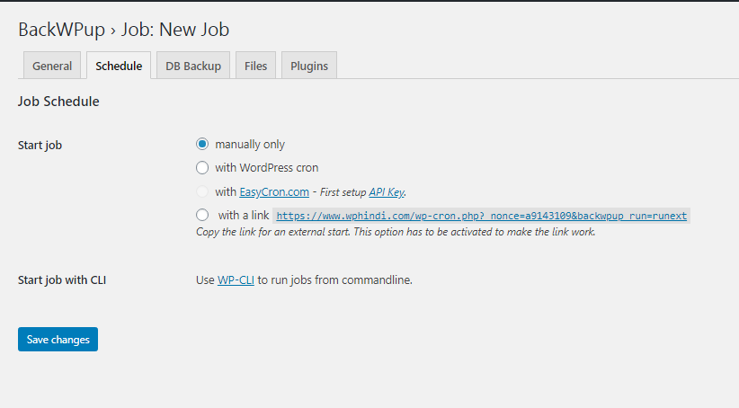 Schedule टैब में, Manually only आप्शन को सेलेक्ट करें। ये डिफ़ॉल्ट सेलेक्ट रहता है अगर आप चाहते है WordPress Cron के द्वारा बैकअप लिया जाए तो आप ले सकते है